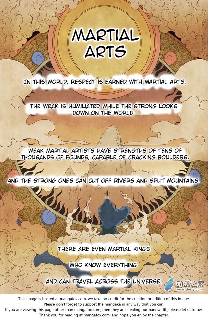In this world, respect is earned with martial arts. Weak martial artists have strengths of tens of thousands of pounds, capable of cracking boulders. And the strong ones can cut off rivers and...