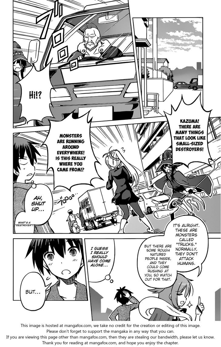 The life of Satou Kazuma, a hikikomori who likes games, all too soon came to an end because of a traffic accident…… It was supposed to, but when he woke up, a beautiful girl who called...