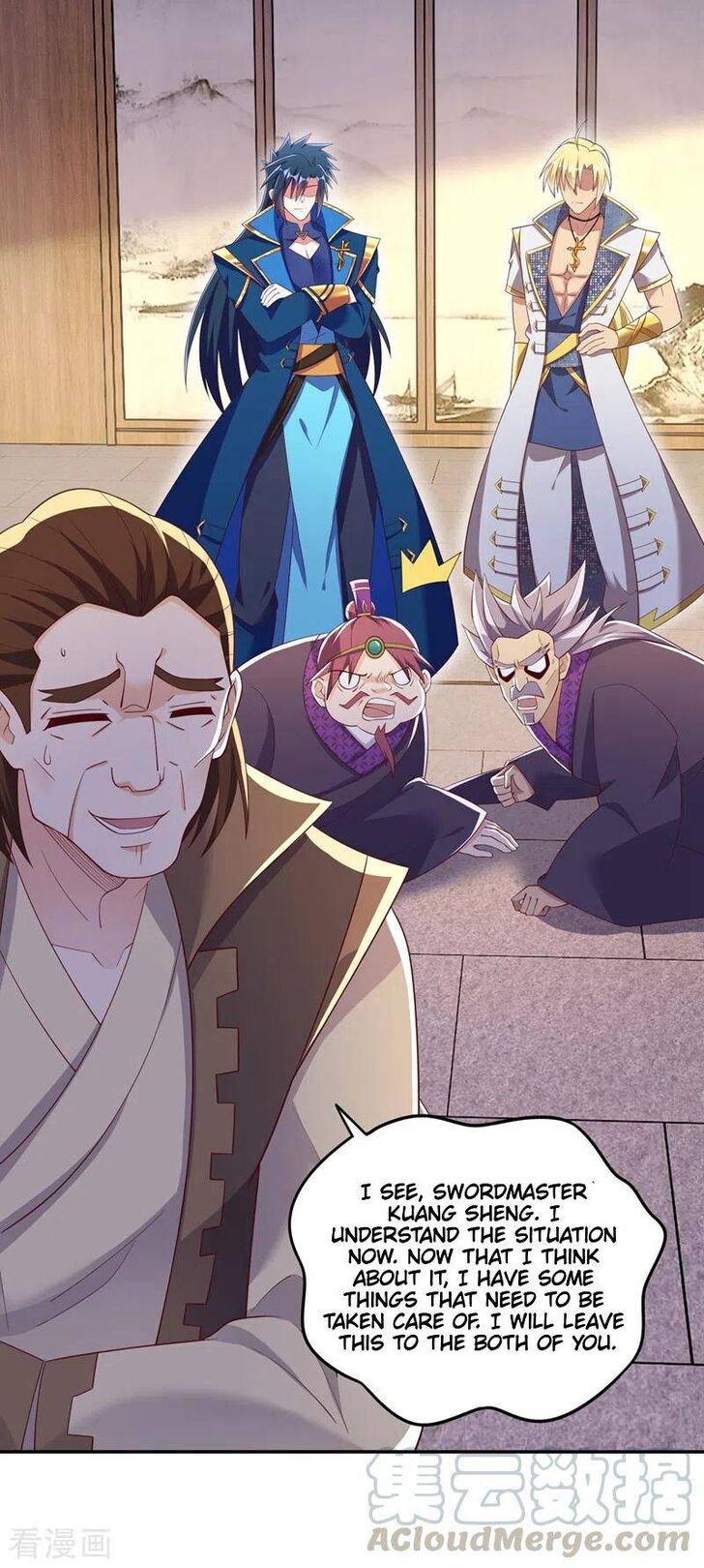 Once the spirit sword roars, within heaven, earth and the three worlds, I shall reign as the sovereign! Those who do not submit shall die!